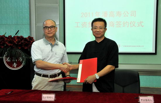 大会由工会主席黄伯强主持。会议审议并以投票的形式表决和通过了《2011年度公司工资集体协商协议》。甲方法人代表魏大华董事长总经理与乙方法人代表黄伯强主席签订了《2011年度公司工资集体协商协议》。