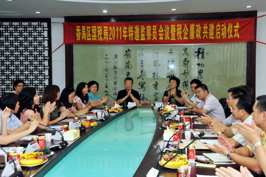 9月28日下午,在潘高寿公司举行了广州市番禺区国家税务局2011年特邀监察员会议暨税企廉政共建启动仪式。潘高寿董事长、总经理魏大华,番禺区国税局局长伍建兰出席并讲话,同时为“税企廉政示范点”启动仪式揭牌。两单位相关领导、特邀监察员和兼职监察员逾60人参会。会上,魏大华董事长总经理作了题为“廉政共建税企共赢”的讲话。番禺国税一分局局长陈上公就区局近年来廉政文化建设的措施与成效作介绍。双方领导、监察员热情学习交流,探讨廉政文化。税企携手,共促廉政文化建设健康发展。