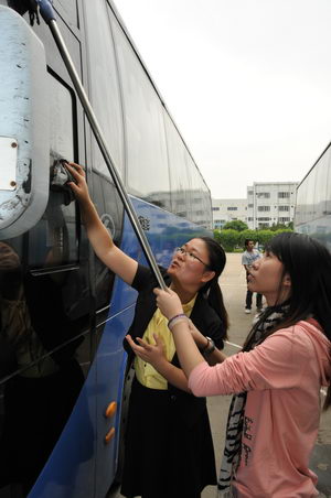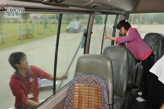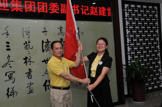 之后,梁志平书记把一面崭新的义工旗帜授给义工队队长,同时把“慈爱乐助”的潘高寿传统也传递给了这群90后担纲的义工队。义工队四个小组组长,就义工队核心词“奉献、友爱、互助、进步”,陈词诠释了他们服务的理念。坐言起行,仪式后,义工队打着鲜艳队旗,开始了首次义工活动,清洁公司多辆班车,在他们辛勤的身影中,义工队队徽最是特别、耀眼。