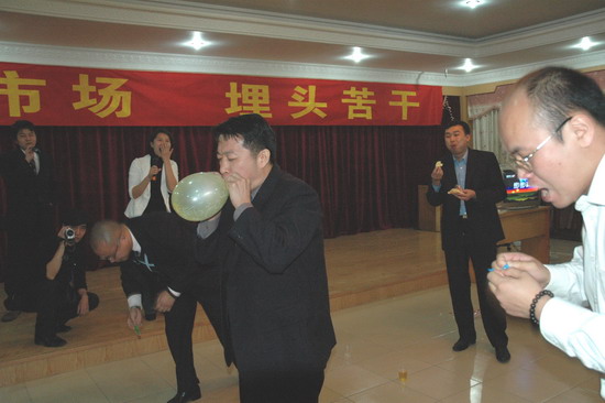 大会的主旋律是激昂的,节拍是紧凑的,亮点是多彩。扣人心弦的是区域经理与大区经理的述职以及随后的竞聘。37人参加了述职,7人参加竞聘。评委由直接上级、间接上级、相关领导以及下级、公众评委、督导员等组成,对述职竞聘者从工作业绩以及综合能力等二大方面、七个细项进行考评。经过两年的锻炼,大家的心态日趋成熟了,表现出胜不骄,败不馁;得之淡然,失之泰然。东北区大区经理江华,二下二上(上年述职下课,竞聘再上,今年亦然),他相信自身的实力,恰也反映出比较公平、竞争机制。这是特点之一,再者,也体现出新老配搭各精彩。这次述职,大区经理头名为资深的营销骨干何穗智。而第二名的张争鸣以及大区竞聘第二名的向恒晟、第三名的张云波等投身公司营销工作不过二、三年,可谓后浪推前浪,反映了公司营销上不拘一格的用人机制。正如魏总说的坚持述职竞聘就是给大家一个多功能的平台,让大家尽量展示、发挥、交流、提升。既述职、竞聘,也培训提高。这次请来红海公司总裁和我司人力资源顾问讲课,让大家对用工操作和劳动法规等问题获得新知。大会开得团结紧张,也轻松活泼。期间,举行联欢晚会,大家齐参与游戏,其乐融融,增添的是家的感觉。