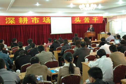 最后魏总作了回顾与展望的讲话。去年,“野狼行动”取得预期的成绩,成功启动了全国市场(西藏以外)。品牌影响力全面提升,潘高寿以4.15亿的品牌价值雄居中华老字号企业前列。形成了品牌价值超过产品销售价值;品牌影响力超过了产品影响力的态势。可见品牌战略成功地对产品销售的拉动……。新的一年气可鼓不可泄,不进则退。“精耕细作,埋头实干”魏总强调在这个总方针之下,区域深耕,终端细作。同时全面推进商务、管理、企业文化、队伍建设、 活动流程再造等系列工作。公司将加大饮料产品的发展,力求以清凉滋润、药食同源的理念为诉求,加大公司饮料市场份额,快速提升经济增长点。为此,成立了饮料部……。