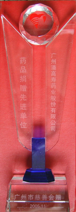 11月24日,广州市慈善会假座东方宾馆会展中心,召开了“庆祝广州市慈善门诊开业十周年座谈会”。会上对十年来一直支持慈善门诊工作的单位和药品捐赠先进单位进行了表彰并颁发了奖杯,我司以及桥光、光华、王老吉、明兴等单位同时受到表彰,广东电视台等多家媒体到现场进行了录播。