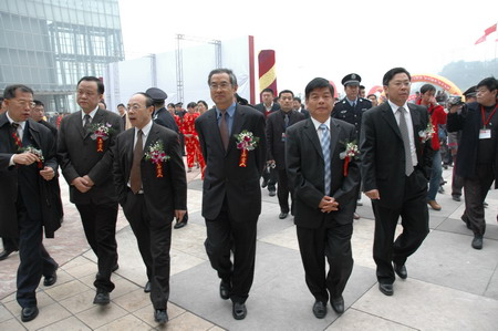 重庆市领导与杨荣明董事长在剪彩仪式后步入展场