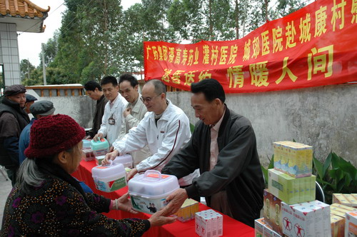 当天,广药集团工会陈灿英主席、潘高寿药业工会黄伯强主席分别代表集团、公司向特困党员送赠家庭药箱以及向村民送赠治咳药、妇女儿童用药一批;灌村医院医务人员为村民看病,村民们非常感动。此外,陈灿英工会主席和黄伯强工会主席同往城康小学,向该校赠送电脑。同时,黄主席看望了去年潘高寿“帮扶助学结对子”的对象张彩宜小朋友。