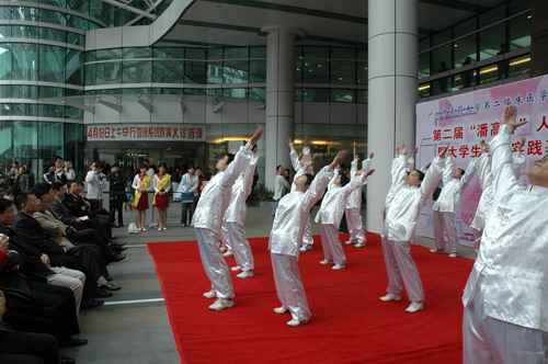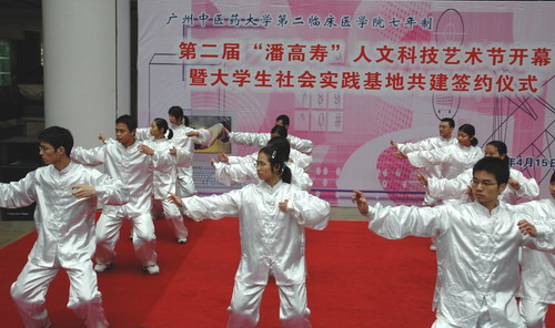 由广州中医药大学第二临床医学院与潘高寿药业共同主办的人文科技艺术节已进行到第二届。承继“博古通今,中西相辉“的艺术节主题,这次人文科技艺术节将会更加精彩。从4月15日至5月14日,系列活动辐射三元里校区、大学城校区、南方医科大学等三大校区,涵盖科技文化、文娱体育等内容。重在实践的活动包括健康服务进社区大型义诊、“名医成才之路”访谈、“人文大讲堂”、“走进潘高寿”等等,力图展示医学院创办8年来在“师带徒”的办学特色下,学生们在德、智、体、美、劳各方面所取得的成绩与勇于实践的精神风貌。当天,八支大学生实践分队先后从首届青年女科学家林琳教授、潘高寿药业领导、中医药大学领导的手中接过授旗,下午即开赴越秀诗书街、白云区景泰街等八社区开展主题为“歧黄术承八载,爱心情暖八方”的健康服务活动,以帮助广大居民的建立健康的生活方式,提高预防疾病的能力。为此,潘高寿支助价值4万多元的家庭常用药品,实践“济世为怀,服务社群”一贯企业理念。“我们企业既出好产品,也育好人才,我们将不遗余力地为广东建设中医药强省贡献力量……”潘高寿公司魏大华董事长总经理在开幕式发言时强调。近年,潘高寿先后成为四川万县医药专科学院、香港浸会大学、广州中医药大学等多家学院的教学实践基地,密切与省内外大专院校携手共建,产学互动,全面发展。