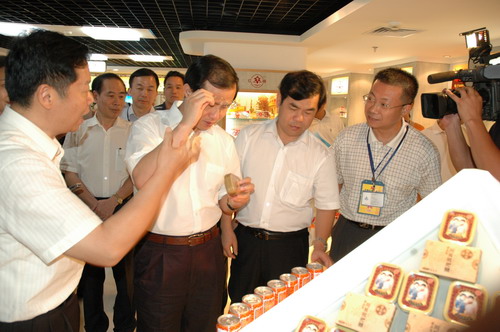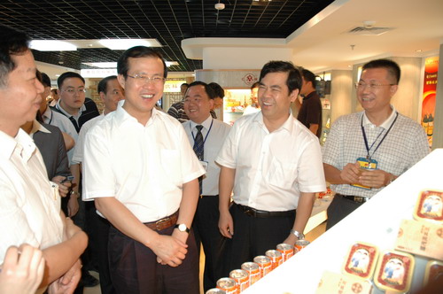 据悉,商务部“品牌万里行”活动旨在培育一批国内畅销、具国际竞争力的自主品牌。广东作为本次活动东部开放行和中部崛起行的交汇点,以其拥有165个“中国名牌”产品连续5年位居全国之首。而广州迄今创出了21个中国名牌产品、8个中国驰名商标、146个省名牌产品、136个省著名商标、399个市著名商标。这些名企虽只占全市规模以上工业企业数的3.2%,但其工业总产值数的比重却超过35%以上,年销售收入数亿元的企业比比皆是……,其中“老字号”企业功不可没。在广药展位前团员们驻足良久。“‘陈李济’与‘潘高寿’哪个历史更长”傅自应部长助理关切地问。“‘陈李济’是广州最老的名牌,创于明万历年间;‘潘高寿’创于清光绪年间……”平欣光主任当起解说员,同时向代表团介绍了广州名优产品的状况。傅自应部长助理似乎对广州的“著名商标”与“名牌产品”称号大户之一的潘高寿“情有独钟”。在“潘高寿”展位与魏大华总经理亲切交谈,边说边摘下眼镜细看产品,特别询问了潘高寿润喉糖和凉茶等保健品的情况,对“潘高寿”推陈出新的做法予以肯定。