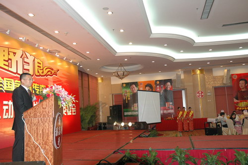 “呵,这里很火,我仿佛进了狼窝”毛主席的特形演员之一、著名的表演艺术家、潘高寿的产品形象代言人唐国强健步踏上讲台,幽默的话语引来大家阵阵的笑声。