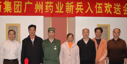 12月10日,广州药业举行2006年新兵入伍欢送会。我司青年孔令权应征入伍,前往四川重庆武警总队服兵役。