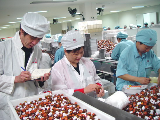 今天(28日)一早,广药集团、广州药业施少斌总经理带领集团本部办公室、财务部、资讯部等机关工作人员来到我司制剂车间口服液包装生产现场参加劳动,我司员工的生产热情受到极大鼓舞。