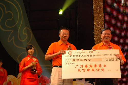 是日下午,广州市番禺慈善会在区会议中心召开了“广州市番禺区慈善会第二届会员代表大会”。骆蔚峰区长到会讲话,谈了增强慈善的社会责任感、使命感,呼吁企业、个人,唤起爱心,互帮互助,救助需要帮助的群体,共谱和谐的意见。会上,还进行了慈善会荣誉职务的聘书颁赠。魏大华董事长从区人大副主任万志成手中接受聘书,获聘为“番禺区慈善会第二届荣誉副会长”。魏总表示,潘高寿的健康发展离不开社会各界的支持。我们要尽社会公民的责任,一如既往,热心支持社会慈善福利事业。