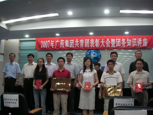 6月7日,在广药集团团委召开的表彰大会上,我司团员和组织更是喜获七项荣誉称号。其中:我司团委获“广药集团优秀基层团组织”称号;产品研发中心质量标准组获“06年广州市青年文明号”。