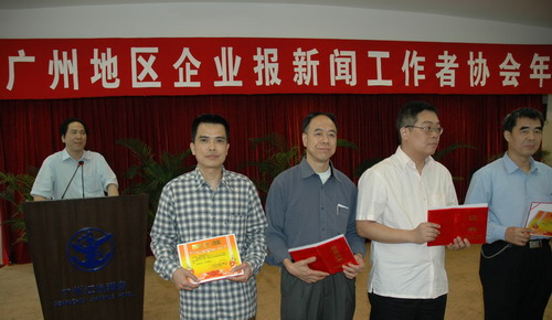 广州地区企业报新闻工作者协会2007年年会暨好新闻颁奖会在4月广州隆重举行。省、市新闻出版和广播电视局领导以及市委宣传部等领导出席并讲话。会上,会长程浩总结了2006年协会的工作。常务副会长周丽华作2007年工作计划与设想。广州新闻出版和广播电视局黎扬处长讲话,充分肯定了广州地区各企业报在政治宣传、文化建设、品牌传播方面的重要作用,是一支不可忽视的重要力量。此外,由副会长徐勤公布和颁发了05年度广州地区新闻奖。潘高寿报、广州海运报、广州铁道、广州港口、王老吉、等17家单位分批上台领奖。我司获奖颇丰(好消息、好摄影、好专栏等12个奖)。从而标志着我司的办报质量已跃升于广州地区企业报的先进之列。以较少人力、物力投入而出精品,十分难能可贵!获同行赞赏。