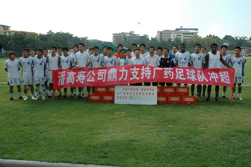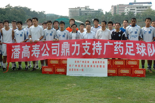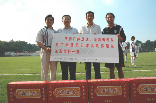 广药集团副董事长、广州足球俱乐部常务董事长谢彬、广药足球俱乐部总经理宁智雄、广药足球队主教练沈祥福参加了此次简单而隆重的赠送仪式。随后谢董事长及魏总经理等领导饶有兴趣地观看了广药队与香港足球老牌劲旅南华队的热身赛。结果,广药队以6:1大胜对手。