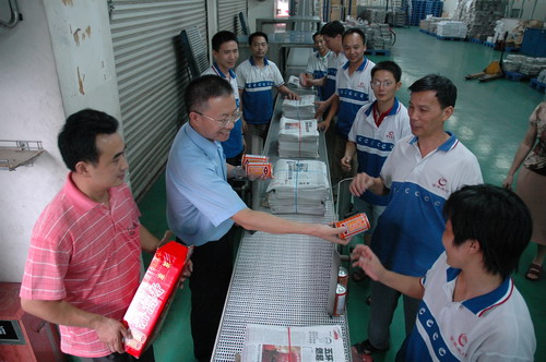 羊城晚报发行部总经理陈世良、副总经理丰光参加了此次赠送仪式。丰副总对潘高寿的关心表示感谢和钦佩,并表示要努力为社会提供更加优质的服务。魏总经理说夏季酷暑,对顶着烈日工作的送报员来说尤为辛苦,加之我们发行的队伍中有许多员工是外来工,要适应广州的炎热气候,一定要学会喝凉茶,学会养生。魏总表示希望能有与羊城晚报合作的机会,实现共赢,并祝愿羊城晚报越办越好!