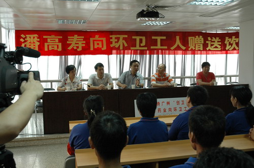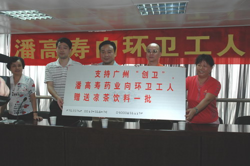昨日上午,潘高寿药业股份有限公司工会主席黄伯强一行前往广州老城区六榕街慰问环卫工人和街坊创卫监督员,送上清润的潘高寿凉茶,为处在创卫攻坚最前线的环卫工人们打气鼓劲!