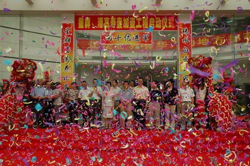 最后,苏总以激昂的声音宣布“1+1工程”正式启动,顿时,鞭炮齐鸣、鼓乐喧天、礼花绽放、群狮舞动——预示着未来璀璨好光景。