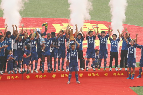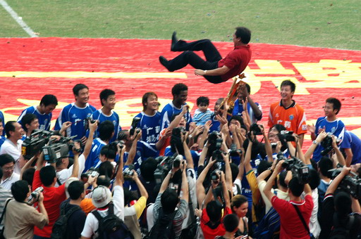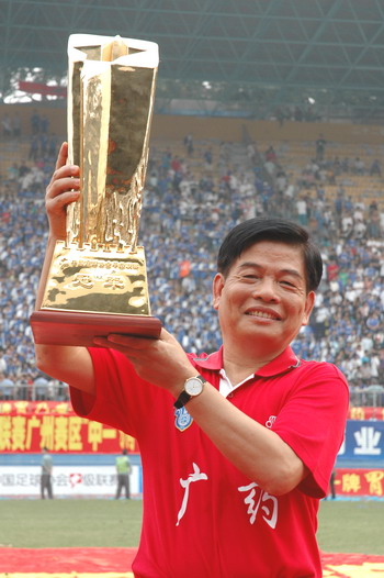 省委常委、市委书记、市人大常委会主任朱小丹等领导与教练、队员逐一握手祝贺,广药队球员们兴奋地把主帅沈祥福高高抛起,徐亮激动地亲吻了杨荣明董事长。许瑞生副市长与沈祥福一起奔向看台,向球迷和广药集团各企业的员工致谢。广药队全体球员最后集体拉起了一条长长的横幅:感谢广州街坊父老、广大球迷的鼎力支持,明年中超赛场再见!