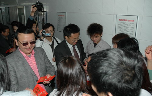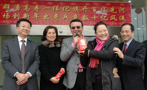 金猪财不尽,福鼠又临门。大年初七,这个“人日”星群潘高寿人过得热闹,开工仪式先后在星群、潘高寿厂区举行。星群、潘高寿厂区景色一新,一派节日喜庆气氛。星群办公楼门前一幅春联分外醒目:星群潘高寿一体化旗开百代先河,市场创新年出奇兵竞数十亿风流。门楣上书:解放思想。