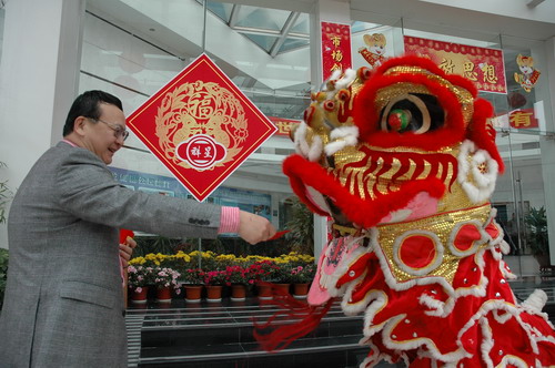 炮竹声声除旧岁,醒狮翩翩舞新姿,预示着又是一个好年头。去年星群、潘高寿“1+1”工程成功启动,星群·潘高寿营销中心也正式成立,资源整合正如火如荼。福鼠至,群狮舞,宏图展。让我们解放思想,齐心协力,共同创造我们的10亿风流!
