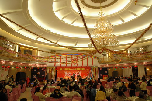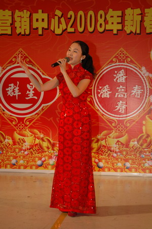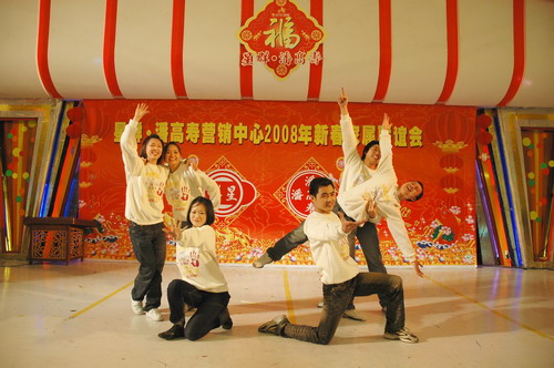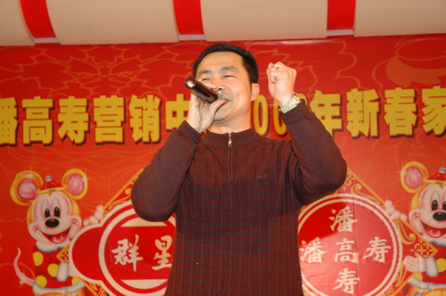 晚宴开始,魏然、胡小华、王文展等激情献唱、热舞助兴,台上节目精彩,台下佳肴美味,还不时穿插让人紧张兴奋的大抽奖。这是一个温馨的晚会,我们的业务员常年在外跑差,今天终于有机会聚到了一起,问候、祝福的言语弥漫在四周,台上载歌载舞,台下欢声笑语荡漾在每个角落。在苏董的带领下,营销人员齐唱了一首“爱拼才会赢”,是啊!在过往一年里,星群、潘高寿营销人员用敢于拼搏的精神完成了集团下达的目标任务,异口同声的合唱,正是他们真情的表白。相信在一群“爱拼”的星群、潘高寿营销人员的努力下,我们会有更好的明天!