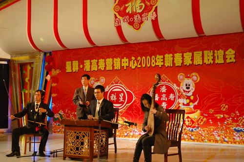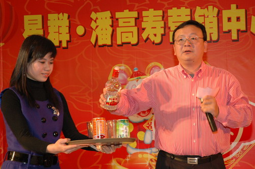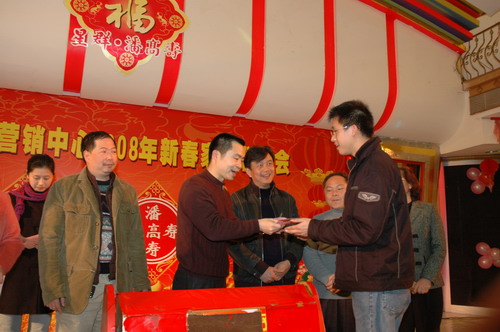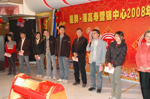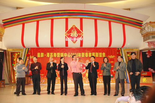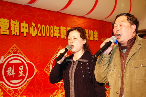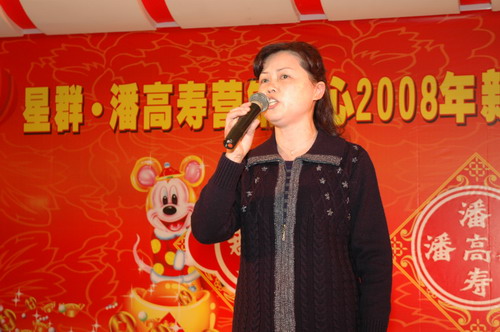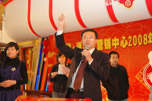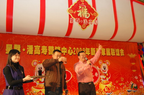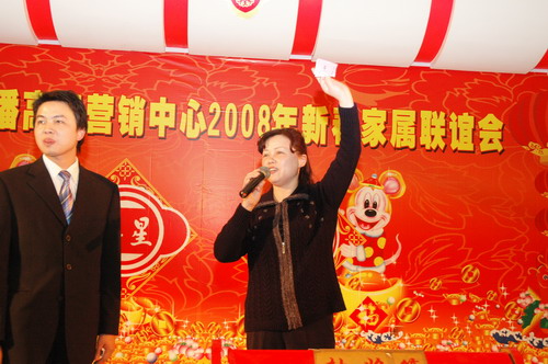 一曲民乐合奏“步步高”之后,联谊会正式开始。主要领导们先后上台向大家致词。星群·潘高寿营销中心总经理姚江雄首先向在座的营销精英们问好。他肯定了营销人员在07年取得的成绩,鼓励他们要鼓足干劲,发挥1+1〉2的优势,在苏董为首的班子带领下,努力完成任务,并祝他们家庭幸福、工作顺利。随后,魏大华总经理讲话,祝营销人员及家属们鼠年吉祥,事业蒸蒸日上。他感谢了营销人员过去作出的努力和家属们义无反顾的支持,让我们的营销人员能够无后顾之忧地征战全国各地。他提醒在座员工,虽然1月实现了开门红,但全年的压力还是比较大,很快营销队伍要再一次奔赴各地,魏总期望家属们继续给予全力的支持,并表示员工家属若有任何困难都可以向公司反映,公司将积极解决,共同为10亿的目标努力。郑楠书记表示,这是星群·潘高寿营销中心成立以来第一个家属聚会,她代表星群、潘高寿党委向营销人员及家属表示衷心的感谢和致以节日的慰问。营销人员是“舍小家为大家”,我们的“军功章”上有营销人员的一半,也有家属们的一半。苏广丰董事长的讲话妙语连连。“十个营销九个富,还有一个当上好干部”他说作为营销人才的家属是光荣的、值得骄傲的,做好营销“大则治国,小则治企”。晚宴过后,营销精英们很快要上前线去了,俗语说“小别胜新婚”,苏董期望在座各位能好好享受这次“小别”,他说营销有酸甜苦辣,人生本来就该如此,并鼓励大家努力奋斗。