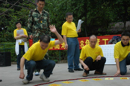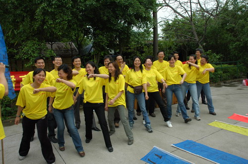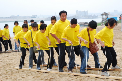 下午全体学员乘车前往丹灶大湿地公园进行户外拓展培训。培训通过热身、破冰、建立信任、沟通、解决问题、分享等多种形式,引导学员完成“极限时速”和“无轨电车”两项任务。培训前教官一再强调大家在项目进行的时候一定要记住两个字:入、悟。既是投入和感悟。星群潘高寿的学员们不管男女老少,领导干部还是普通的职员,各个充满激情,全身心地投入到活动当中,在快乐中体验,在体验中探讨,在探讨中思考。许多队员两个项目下来已经大汗淋漓、疲惫不堪,但他们依然很感谢,因为培训带给他们更多的是体验与感悟,是挑战与创新,是快乐和融合,是收获与成长……