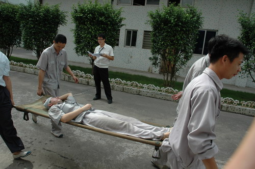 9月25号下午15时正,“铃……”急促的警报铃声响起,警报就是命令,公司应急领导小组立即赶赴现场,各个车间部门的应急救援小组分工行动,对“冷冻机房爆炸事故现场”进行扑救,伤员及时抢救并送离现场,事故综合大楼全体工作人员紧张有序应急疏散到了指定地点。这是我司应急疏散演练的一过程。