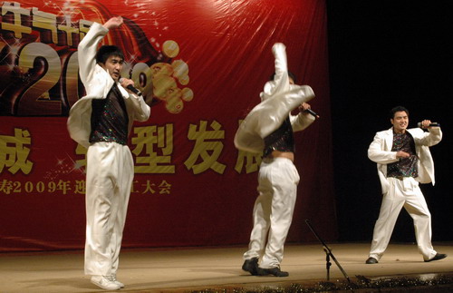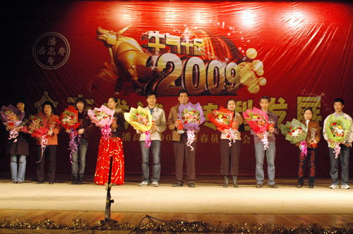 2008年是企业历经崎岖的一年,面对困难和压力,潘高寿人自强不息、艰苦拼搏。在员工大会上,公司对兢兢业业,在岗位上作出杰出贡献的十位员工进行了表彰。魏总宣读了《关于表彰潘高寿十佳员工的决定》,十名来自生产、销售、质量、管理等岗位的优秀员工上台接受了领导的颁奖。魏总鼓励十佳员工继续发扬艰苦拼搏的精神,团结一心,众志成城,共同实现公司的转型发展。伍诗韵代表十佳员工发言,表示会继续努力,依照公司的新发展战略,做好社区医疗市场开发工作。最后她祝愿公司明天更好!其他九位优秀员工也向台下观众献上了新年祝福。