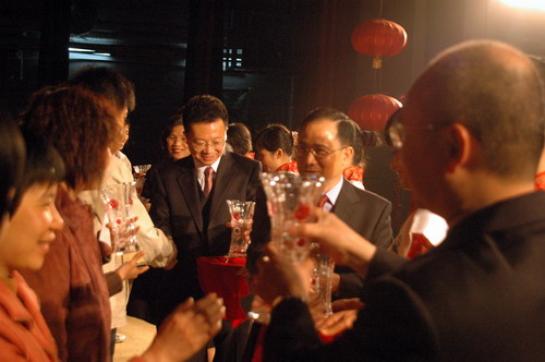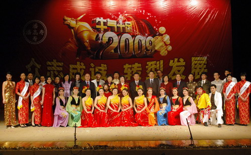 领导与演员们齐声高歌《大家在一起》