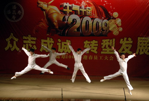 员工大会由党委书记郑楠主持,杨秀微书记作重要讲话,魏大华董事长致辞。魏总代表领导班子感谢默默工作的全体员工。2008年是悲喜交加、刻骨铭心的一年,但是我们仍取得了一定的成绩,获得高新企业初步认定、入选国遗、实施了企业年金制度,保障员工福利,等等。潘高寿人在波折中也重新找回了尊严、自信以及团队的力量,更有了新的领导班子的领导。魏总感谢了集团的英明决策和我们团队的自强不息。2009年,我们将面对更多的困难,公司经过研究,确定了新的发展方向,实现转型发展,由以往的以终端药店工作为核心转变为以“消费者教育工作”为核心;由以往的以药店促销工作为主的终端工作模式转变为以社区和新农合宣传推广为终端工作主要模式;由以往的以面对一二级城市终端药店为主体的终端工作转变为以社区医疗和新农合工作为突破口,开发广阔的农村市场,开展社区医疗工作。魏总鼓励全体员工坚定信心,团结一致,争取把丹鳖胶囊、凉茶做到1个亿,润喉糖达3000万元。