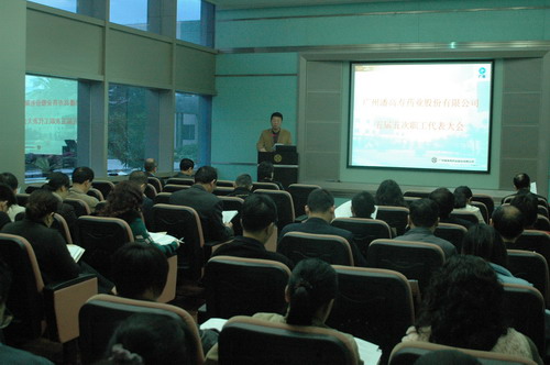 2009年3月5日上午,我司在综合大楼会议室召开了第五届五次职工代表大会。职工代表61人到会,公司主要领导出席大会。大会完成各项议程,圆满结束。大会由工会主席黄伯强主持。魏大华董事长、总经理向大会作了去年的工作总结与今年的工作计划的报告。同时解答了公司《薪酬分配管理方法》、《员工奖惩条例》。龙应焰主任代表财务部作了2008年度正常业务接待费开支情况说明,张伟祥副总经理作关于《选择生产(操作)岗位工作时间排班方案》的提案。魏大华总经理在总结去年工作时说,去年公司在国内外严峻的经济条件环境下,克服重重困难,积极应对,经受考验,生产经营、科研有所提升,开发出丹鳖胶囊等新一代产品,令人振奋……同时,展望新一年,公司工作重点进行战略性转移。对渠道、终端、产品、广告、内拉等五方面进行适度的调整。调整是为了可持续健康发展。魏总的总结与计划,体现了实事求是、科学发展的精神和要求,大会审议并表决一致通过。同时,魏总对五届五次职代会收集的关于对生产经营、工资方案、员工奖惩条例、生活福利等方面的意见和建议作了详细的解答。会上,大会投票表决了《薪酬分配管理办法》、《员工奖惩条例》、《生产(操作)岗位工作时间排班方案》,结果获高票通过。最后,郑楠党委书记讲话,强调我们要以科学发展观统揽全局,切实落实公司的各项新决策、新做法、推进各项工作健康、和谐地向前发展。
