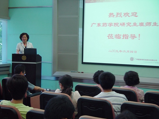 6月4日,广东药学院龙晓英副院长,及其带领的30余名研究生师生来我公司进行了参观交流。公司科研主管领导胡燕副总经理和公司副总工程师卢其福接待了龙院长师生一行,向他们介绍了公司概况及当前的科研工作情况,并带领师生在生产车间进行了参观。参观结束后,卢其福副总工程师与师生们进行了互动交流。