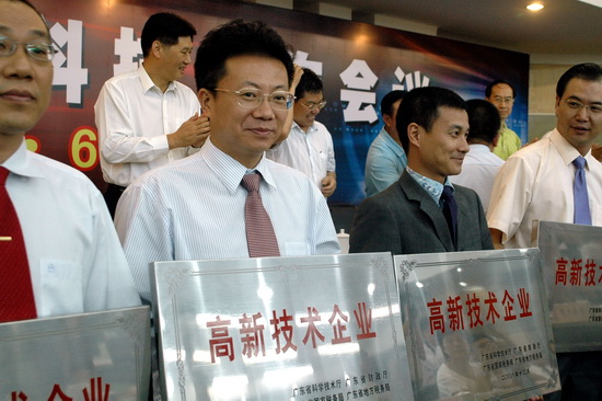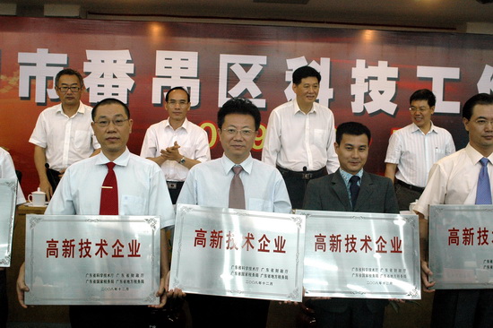 大会由龚汉坤副区长主持。区科技工作领导小组成员、区知识产权领导小组成员、区科技企业等单位代表数百人参会。首先由区科技局局长刘新宇同志作区科技工作报告。随后,广州市科技局局长马曙讲话。接着是颁奖和授牌仪式。我司魏大华董事长总经理出席大会并上台接受牌匾——我司以及番禺珠江钢琴有限公司、广州机床厂等36家企业荣膺“广东省高新技术企业”称号。同时,大会还向广东省科学技术奖及广东省专利奖企业颁奖;向获得广州市科学技术奖的企业颁奖;向广州兰格电气设备有限公司等6家被认定为番禺区科技型企业技术开发中心授牌。