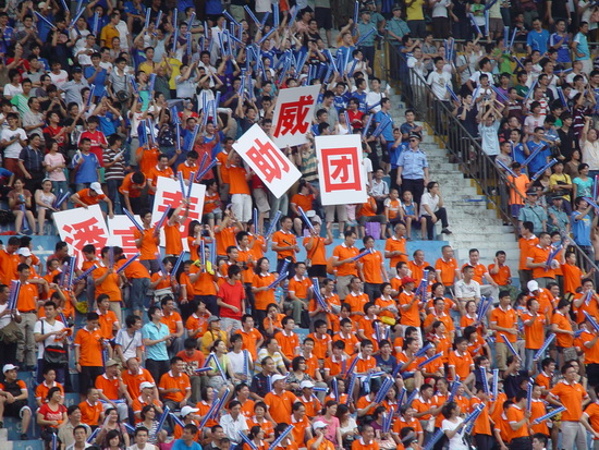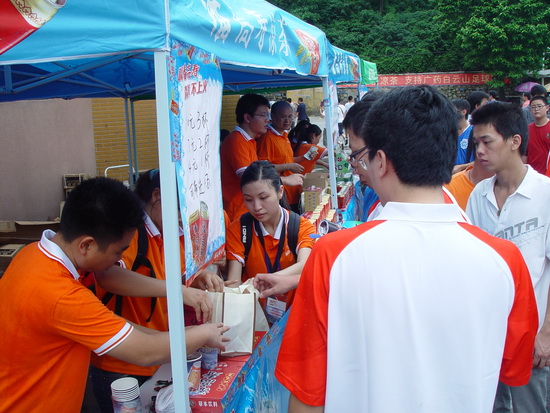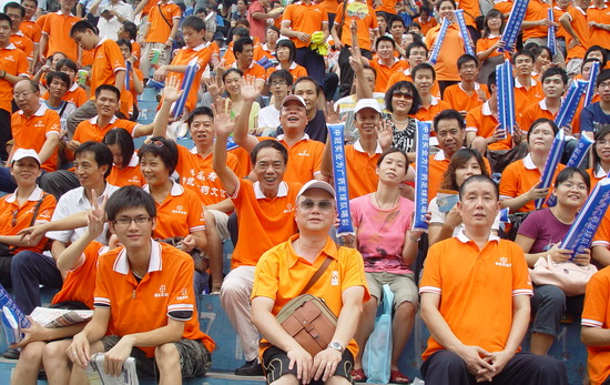继8月2日中超联在赛第16轮广药白云山队在主场迎战河南建业队,以2比0取得胜利,一周之后,广药白云山更是以6比1的辉煌战果,创造了本赛季中超的最大分差。为北京奥运会一周年纪念和我国第一个“全民健身日”平添了几分的热烈。我司组成了400多人的“助威团”在公司高层的亲临指挥下,为广药队呐喊助威,“橙色军团”成了越秀山上一道亮丽的风景。