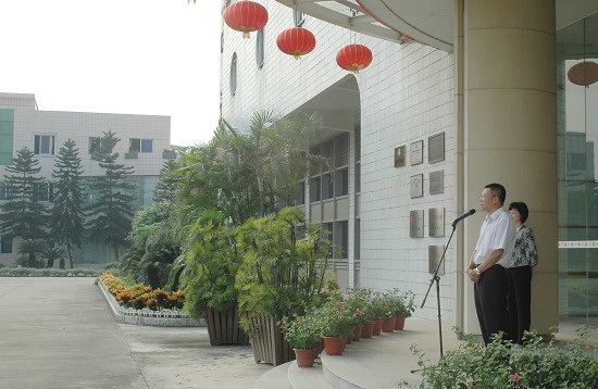 金秋十月喜气洋。10月9日上午,潘高寿全体员工带着国庆的喜悦开始了节后首个工作日,在厂区广场上,在激昂的国歌声中进行了国旗、广药旗和司旗的升旗礼。领导讲话,好让大家鼓劲;员工振作,要为企业出力。魏大华董事长、总经理,郑楠党委书记先后讲话勉励员工继续努力,为潘高寿建功立业。9月,我司生产经营取得好成绩,资金回笼很好。广东蛇膏的“突围行动”取得阶段性成果,“社区、团购”等工作进展良好……。我们任重而道远。潘高寿有着光荣的历史、辉煌的业绩。希望大家继续增强全员营销的观念,做好本职工作,努力让“潘高寿”这个国家级中药文化遗产增值,发扬光大。