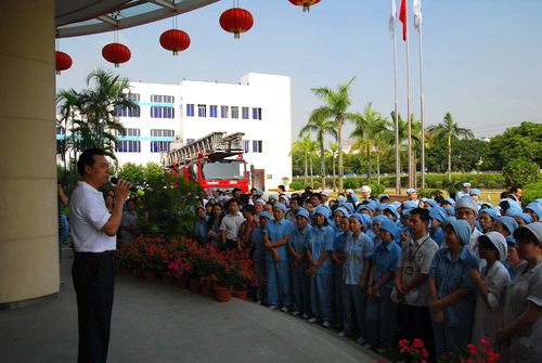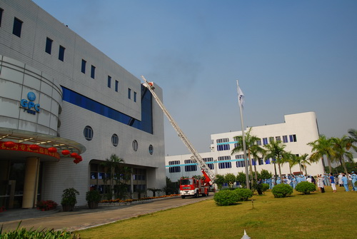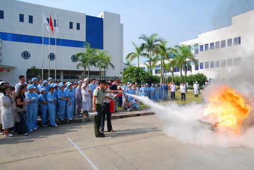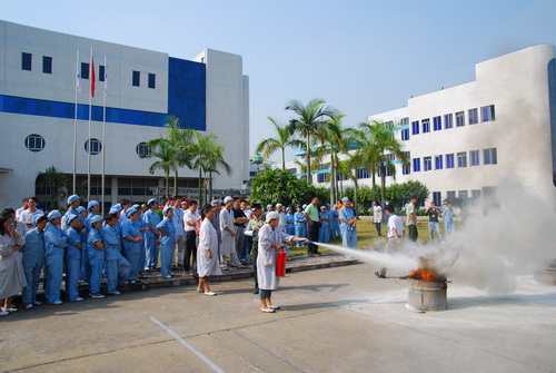 这是我司和番禺区消防中队开展的一次联合消防应急疏散演练。这次演练旨在增强全体员工应急能力和自救水平。演练以协同区消防中队在我司这次“事故”救援为背景。演练目的要使每一位员工熟悉乙醇火灾事故的应急救援、灭火措施和逃生路线,提高各级安全、防火责任人对自己本部门人员应如何应对突发火灾事故的处理能力,并检验公司消防报警、通讯、应急照明系统的性能可靠性,演练结果上述指标均达到要求受到番禺区消防中队领导的肯定。