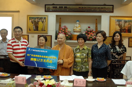 仪式由广州中医药大学党委统战部部长裴立宁主持。广州中医药大学副校长、广东省中医院院长吕玉波,广州药业股份有限公司总经理吴长海等领导以及中国佛教协会副会长、广东省佛教协会会长、广州光孝寺主持释明生先后在仪式上致词。广州药业弘扬扶贫助困精神,热心社会公益;广东佛教团体慈善为怀,弘法利生。大家一同共襄善举。
