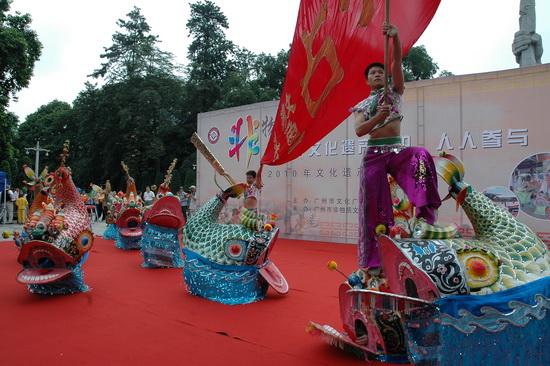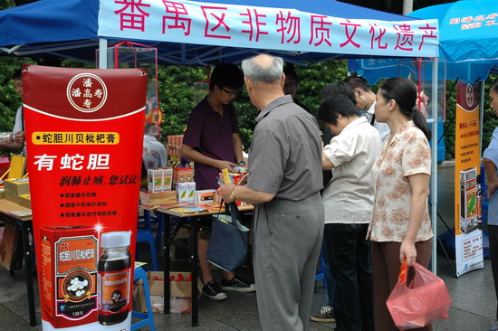 活动由文艺演出与非遗产文化展示宣传两大部分组成。文艺演出——传统的音乐、舞蹈、戏剧曲艺异彩纷呈。番禺区的鳌鱼舞,萝岗区的舞貔貅,活灵活现,趣味十足;文化展位——广州牙雕、广绣、广彩、广州珐琅、红木宫灯等工艺展示引人入胜,而潘高寿中药文化以其独特的魅力通过凉茶、枇杷膏、润喉糖等载体吸引了众多的市民品味、购买……作为岭南中医药文化的代表,潘高寿品牌深受大众的喜爱,这与百年潘高寿一直坚定走传承与创新之路密不可分。2008年6月,“潘高寿传统中药文化”被国务院认定为国家级非物质文化遗产。