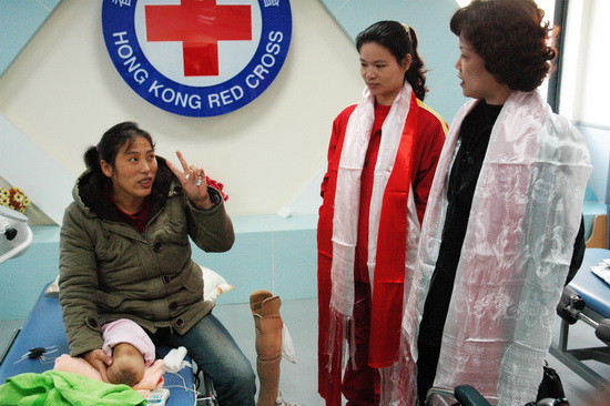 一位正在接受截肢后康复治疗的映秀病人李小群激动地告诉笔者,她在地震中失去了三岁的小孩和自己的右腿,在倍感悲痛之时,广东人民向她伸出了关爱之手,她的截肢手术是广东专门把她接到中医药大学附属医院进行的,康复治疗完毕后她将接上义肢。“广东人民真好!”她脸上挂着的幸福而乐观的笑容,感动了在场所有人。