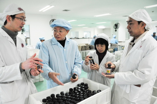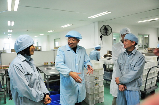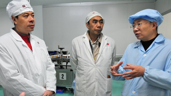 在二、三车间,魏总、张总详细地了解膏、露、液的生产情况。生产总监叶耀成、质量总监朱爱梅现场汇报了工作。魏总、张总即刻研究解决问题,并对进一步增产扩产提出指导意见。同时亲切慰问员工,感谢他们识大体、顾大局以及拼搏的精神。“膏露书新篇、突围创局面”、“专心工作为首要,质量安全皆顾到”车间张贴着醒目的标语,表达了员工们的心声、士气,员工们表示要努力工作,满足产销,同时,为“百亿工程”多作贡献。
