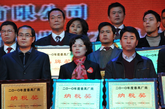 送虎迎兔,双喜临门。2月15日晚,由广州市番禺区厂商会、广州市番禺区企业联合会、广州市番禺区中小企业协会联合主办的主题禺禺为“凝心聚力 创先争优”2011番禺区厂商会新春团拜暨颁奖文艺晚会在番禺英东体育馆隆重举行。潘高寿荣获2010年度番禺厂商“纳税奖”以及“公益爱心单位”两项荣誉。