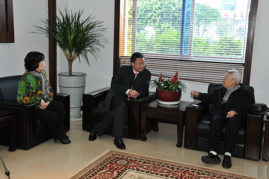 公司董事长、总经理魏大华、党委书记郑楠、工会主席黄伯强等热情接待了马老一行。马老夫妇和随行的广东省法学会卫生法学研究会副会长杨会林在卢其福总工程师的陪同下,兴致勃勃地参观了潘高寿公司现代化的生产车间和先进的质量检验部门。