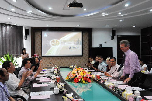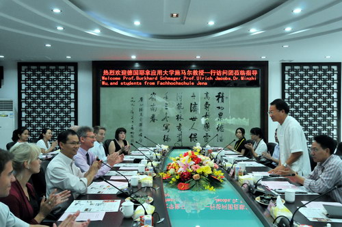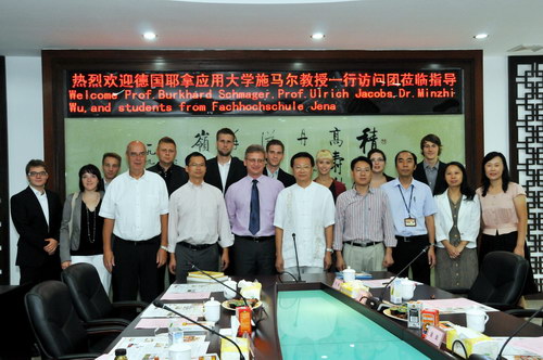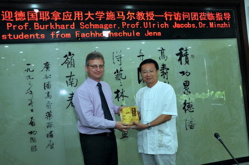 2012年9月19日上午,德国耶拿应用大学副校长施马尔格教授师生团来我司参观访问,这是继今年3月耶拿市副市长考察后的又一批德国客人。董事长魏大华,总工卢其福会见了施马尔格教授师生一行。