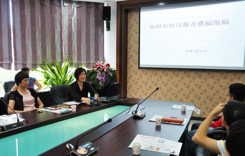 在培训班上,周丽华会长从企业新闻的写作到宣传制度的建设;从企业媒体人的新闻触觉到企业报的评点等方方面面为大家奉上高效的“营养餐”。此外,周会长充分肯定我司宣传工作的成绩以及《潘高寿》报办报的风格与特色。同时,指出了我们的不足。金石良言,教益颇深。这是一堂指导性强、切合实际的培训课。