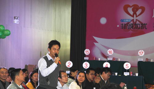 本次活动吸引了广药集团属下22个企业170多位青年的踊跃报名,正式走上嘉宾席的有26位女嘉宾和11位男嘉宾,她们美丽、自信,他们勇敢、坚定。有男嘉宾专程为心仪女生而来,只为当面深情表白;更多的是在这个时间、这个地点遇见互相欣赏彼此吸引的那个人。活动现场300名来自各企业热心关注广药集团“非诚勿扰”活动的优秀青年为他们鼓掌加油,场面火爆。最终参加活动的11位男生中有三位牵手成功。尤其最后一对出现爆灯,全场沸腾,两人满心欢喜的牵手,为本次活动画上完美的句号。
