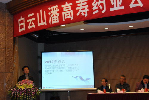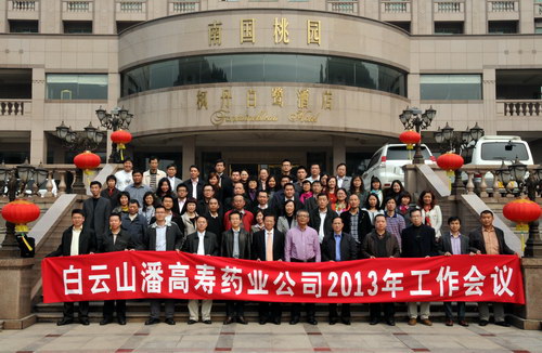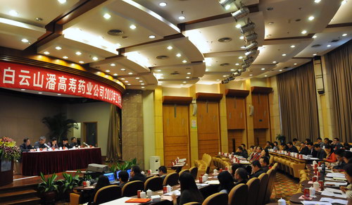 2012年元月23至24日,广州白云山潘高寿药业股份有限公司在南国桃园召开2013年工作年会。会议求真务实,以广药集团“大南药、大健康;五百亿、五百强”战略思想为统领,回顾过往,部署未来。大家献言献策,众志成城,决心在集团资源效益136工程的新一轮战役中建功立业。广药集团工会主席黄志恩出席了大会并讲话,潘高寿班子成员和主任以上管理人员出席。