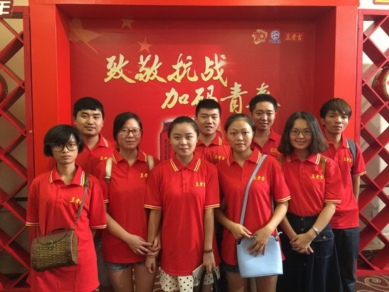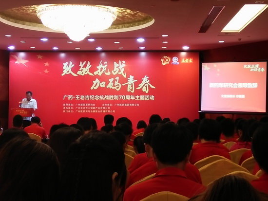 8月30日下午,白云山潘高寿药业团员青年参加了广药·王老吉“致敬抗战,加码青春”纪念抗战胜利70周年主题活动,以王老吉“超吉+”红罐扫码的创新互联方式,传递对抗战英雄的敬意。