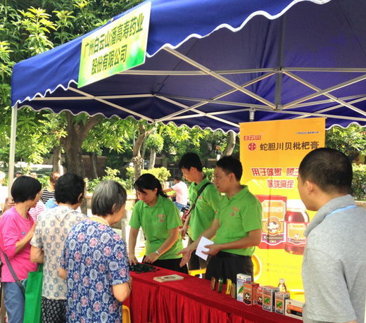 活动共设11个摊位,有专家义诊、过期药品回收、群众咨询及投诉受理、鉴别真假保健品化妆品、辨别真假食品药品等。期间,白云山潘高寿药业副总经理卢其福接受了番禺广电的采访,卢总围绕“安全用药 关注健康”的主题绘声绘色地介绍了传统中药文化及潘高寿的企业文化和产品特色,并解说了使用药品的用法用量及注意事项。