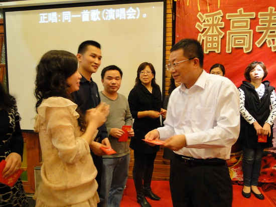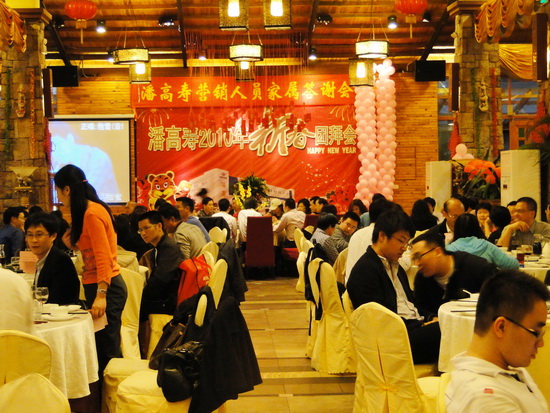 晚宴上,胡小华、徐鸯、戎全刚、张世钦等激情献唱、热舞助兴,台上节目精彩,台下欢声笑语,乐也融融。不时穿插的游戏、抽奖,让人既紧张又兴奋。业务人员常年出差在外,今天家人、战友欢聚在一起,感受着潘高寿这个大家庭的温暖与祝福,四处都弥漫着温馨气氛。战略发展部、销售部合唱的《朋友》、《真心英雄》、《明天会更好》都是他们对团队的情谊、对公司祝愿的最真挚表达。晚宴在领导班子合唱《同一首歌》中走向高潮,就如歌词所言,我们手拉手共同走过了风雨的岁月,相信在公司上下的共同努力下,我们会有更好的明天!
