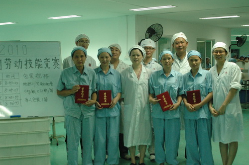 培训期间,各车间、班组分别进行了别开生面的劳动竞赛(团体、个人)。一车间进行专业知识和劳动评比;二车间进行物料拆包及区分以及蛇膏的包装入盒赛;三车间进行口服液入盒赛;食品车间进行正确穿戴劳保用品和知识问答以及包装竞赛。劳动竞赛热情高涨,大家奋勇争先。郑楠党委书记、黄伯强工会主席、李强总监亲临车间现场指导并为竞赛优胜者颁奖。通过劳动竞赛,对立了榜样,凝聚了力量,更强化了团队精神。